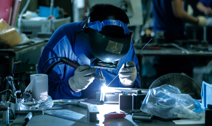 一つひとつの部品を溶接でつなぎ合わせる工程。ロー付やTIG溶接で、アルミや鋼材を接合していきます。細かな作業が求められるため、すべて熟練の職人が手作業で担当。溶接後はひずみを丁寧に除去し、調整します。